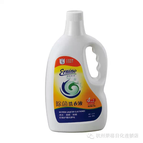 榮格洗衣液,除菌柔順四合一,綠色環(huán)保配方,高效去污,柔順護理,強力除菌;衣物洗后不褪色,不變黃,柔順爽滑。